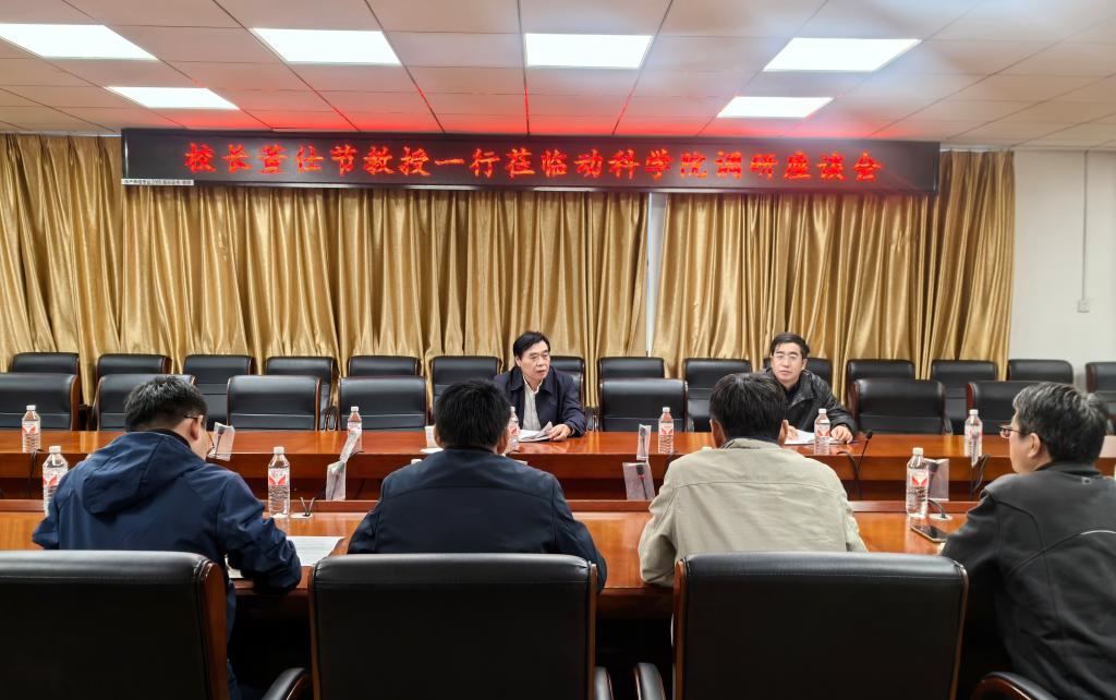 董仕节听取了学院汇报,对学院近年来取得的成绩给予了高度肯定。董仕节就加快高质量推动学院全方位发展提出五点具体要求:一是强化使命担当,加强本科教学工作,把本科教育作为重中之重,结合本科教学评估整改工作,切实深化教育教学改革,提高人才培养质量。二是强化资源整合,推动学科竞赛工作坊和产业学院建设,统筹用好平台条件,实现优质资源共享,拓宽学生就业渠道,促进产教科教融合发展。三是强化顶层设计,围绕学校发展战略,锚定学院发展目标,对标年度目标任务,厘清发展思路、突出问题导向,科学谋划学科建设。四是重视校友工作,丰富校友互动载体,搭建校友交流平台,有效挖掘和凝聚校友资源,充分发挥校友在学校和学院发展过程中的作用。五是确保安全稳定,要在实验室安全、学生安全、意识形态和网络等方面全面提升安全防范能力。